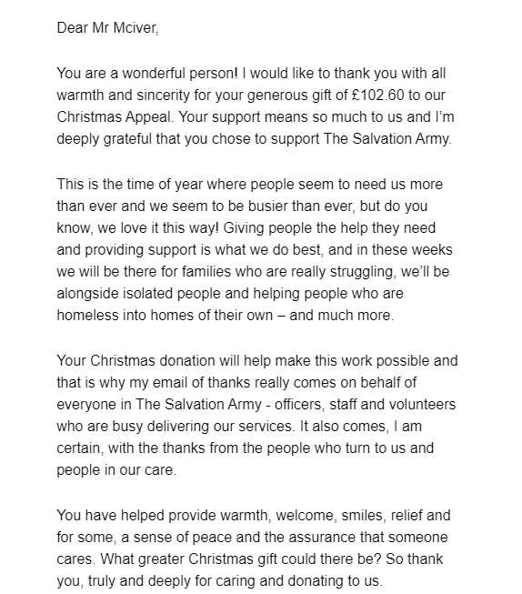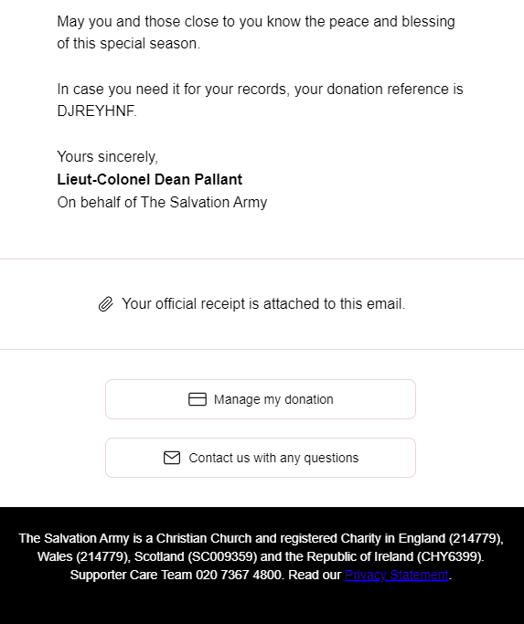 Salvation Army Christmas Donation